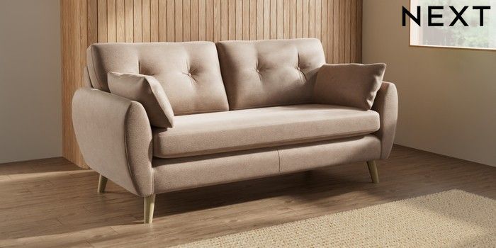 7.3.1 Buy Wilson Buttoned Back 3 Seater Small Sofa Luxe Chenille Mid Natural Retro Tapered - Light from the Laura Ashley online shop