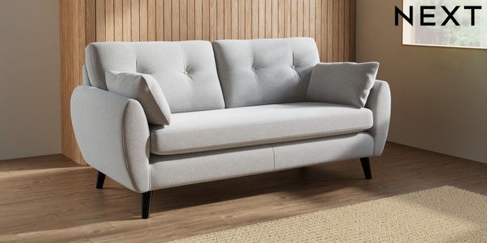 7.3.1 Buy Wilson Buttoned Back 3 Seater Small Sofa Natural Mix Light Grey Retro Tapered - Dark from the Laura Ashley online shop
