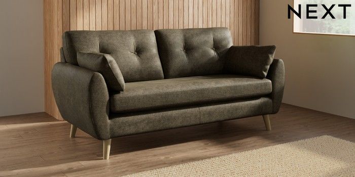 7.3.1 Buy Wilson Buttoned Back 3 Seater Small Sofa Plush Chenille Moss Green Retro Tapered - Light from the Laura Ashley online shop