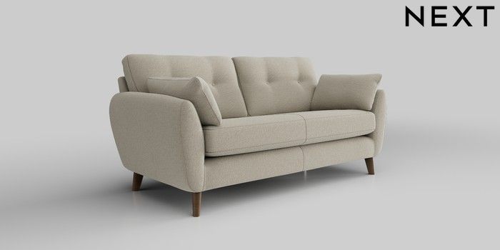 6.12.1 Buy Wilson Buttoned Back 3 Seater Small Sofa Ripple Chenille Light Natural Retro Tapered - Mid from the Laura Ashley online shop Click here to use our website with more accessibility support, for example screen readers