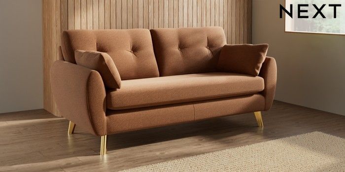 7.3.1 Buy Wilson Buttoned Back 3 Seater Small Sofa Ripple Chenille Mid Rust Brown Metal Tapered - Gold from the Laura Ashley online shop Click here to use our website with more accessibility support, for example screen readers