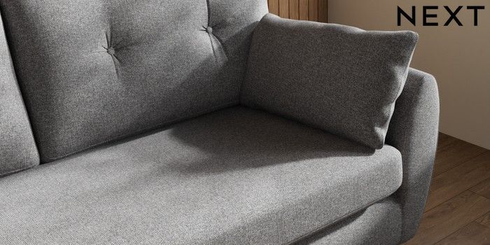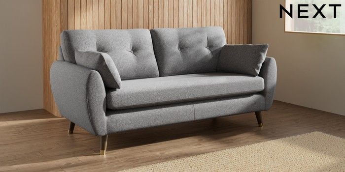 7.3.1 Buy Wilson Buttoned Back 3 Seater Small Sofa Studio Chenille Mid Grey Low Retro Tapered Metal Cap - Mid from the Laura Ashley online shop