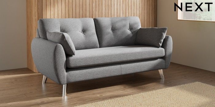 7.3.1 Buy Wilson Buttoned Back 3 Seater Small Sofa Studio Chenille Mid Grey Metal Tapered - Chrome from the Laura Ashley online shop