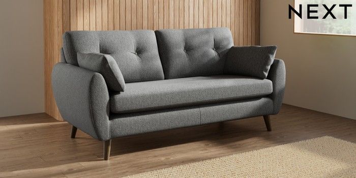 7.3.1 Buy Wilson Buttoned Back 3 Seater Small Sofa Tweedy Chenille Dark Grey Retro Tapered - Mid from the Laura Ashley online shop Click here to use our website with more accessibility support, for example screen readers