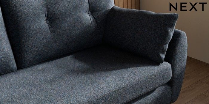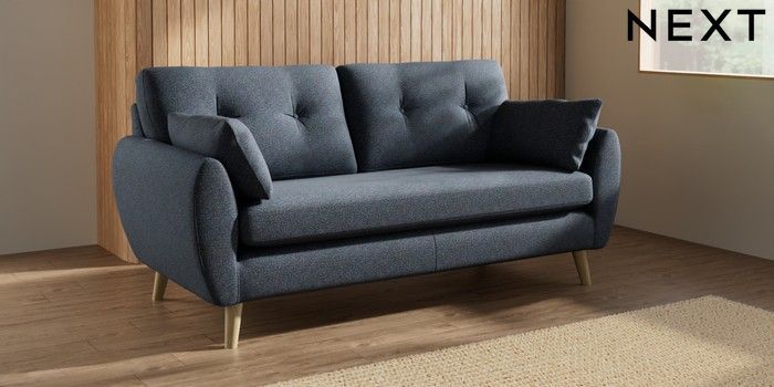 7.3.1 Buy Wilson Buttoned Back 3 Seater Small Sofa Tweedy Chenille Navy Blue Retro Tapered - Light from the Laura Ashley online shop