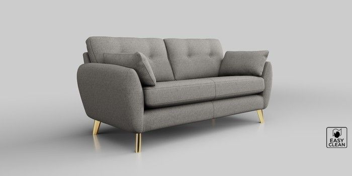6.12.1 Buy Wilson Buttoned Back 3 Seater Small Sofa Woven Chenille Easy Clean Light Grey Metal Tapered - Gold from the Laura Ashley online shop Click here to use our website with more accessibility support, for example screen readers