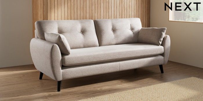 7.3.1 Buy Wilson Buttoned Back 3 Seater Sofa Boucle Chenille Light Natural Retro Tapered - Dark from the Laura Ashley online shop
