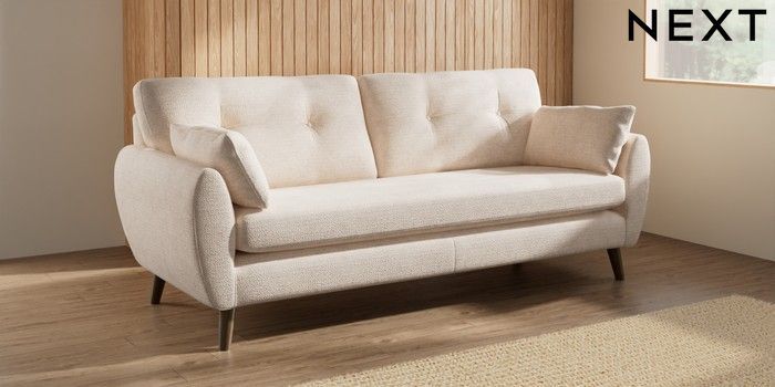 7.3.1 Buy Wilson Buttoned Back 3 Seater Sofa Boucle Chenille Oyster Retro Tapered - Mid from the Laura Ashley online shop