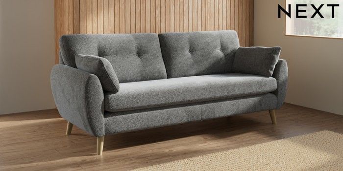 7.3.1 Buy Wilson Buttoned Back 3 Seater Sofa Chunky Chenille Dark Grey Retro Tapered - Light from the Laura Ashley online shop