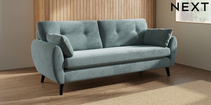 7.3.1 Buy Wilson Buttoned Back 3 Seater Sofa Chunky Chenille Light Teal Green Retro Tapered - Dark from the Laura Ashley online shop