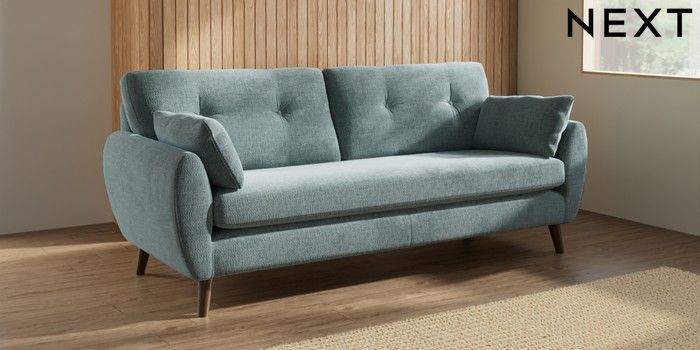 7.3.1 Buy Wilson Buttoned Back 3 Seater Sofa Chunky Chenille Light Teal Green Retro Tapered - Mid from the Laura Ashley online shop