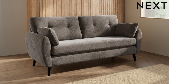 7.3.1 Buy Wilson Buttoned Back 3 Seater Sofa Chunky Chenille Mink Brown Retro Tapered - Dark from the Laura Ashley online shop Click here to use our website with more accessibility support, for example screen readers