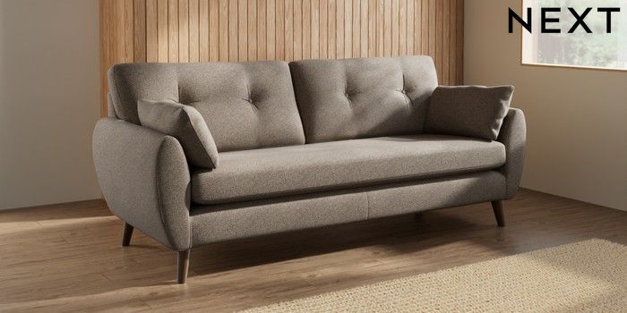 7.3.1 Buy Wilson Buttoned Back 3 Seater Sofa Chunky Weave Dark Natural Retro Tapered - Mid from the Laura Ashley online shop