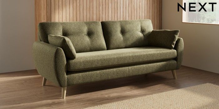7.3.1 Buy Wilson Buttoned Back 3 Seater Sofa Cotswold Chenille Dark Green Retro Tapered - Light from the Laura Ashley online shop