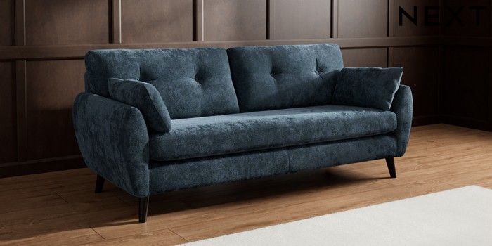 7.3.1 Buy Wilson Buttoned Back 3 Seater Sofa Distressed Velour Midnight Blue Retro Tapered - Dark from the Laura Ashley online shop