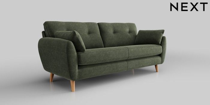6.12.1 Buy Wilson Buttoned Back 3 Seater Sofa Luxe Chenille Mid Green Retro Tapered - Light from the Laura Ashley online shop Click here to use our website with more accessibility support, for example screen readers