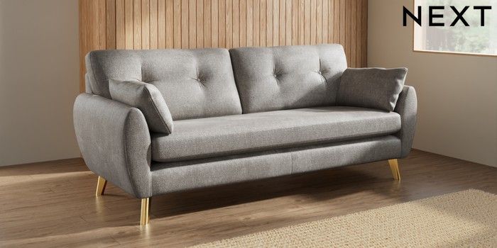 7.3.1 Buy Wilson Buttoned Back 3 Seater Sofa Plush Chenille Light Grey Metal Tapered - Gold from the Laura Ashley online shop
