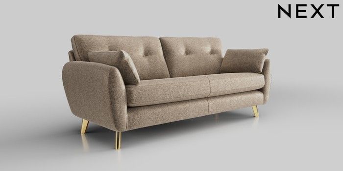 6.12.1 Buy Wilson Buttoned Back 3 Seater Sofa Plush Chenille Mid Natural Metal Tapered - Gold from the Laura Ashley online shop Click here to use our website with more accessibility support, for example screen readers