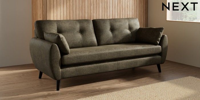 7.3.1 Buy Wilson Buttoned Back 3 Seater Sofa Plush Chenille Moss Green Retro Tapered - Dark from the Laura Ashley online shop Click here to use our website with more accessibility support, for example screen readers