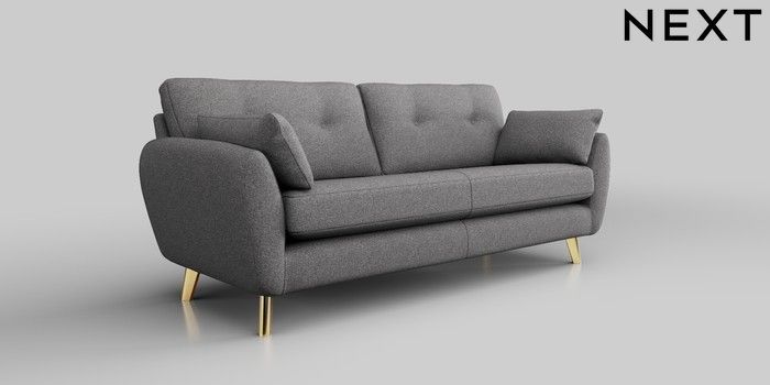 6.12.13 Buy Wilson Buttoned Back 3 Seater Sofa Studio Chenille Mid Grey Metal Tapered - Gold from the Laura Ashley online shop Click here to use our website with more accessibility support, for example screen readers
