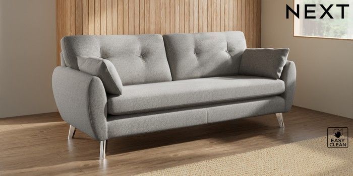 7.3.1 Buy Wilson Buttoned Back 3 Seater Sofa Woven Chenille Easy Clean Light Grey Metal Tapered - Chrome from the Laura Ashley online shop Click here to use our website with more accessibility support, for example screen readers