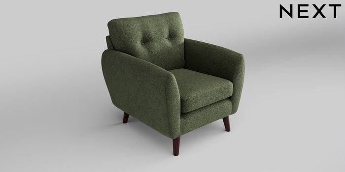 6.12.1 Buy Wilson Buttoned Back Armchair Boucle Chenille Dark Moss Green Retro Tapered - Dark Brown from the Laura Ashley online shop Click here to use our website with more accessibility support, for example screen readers