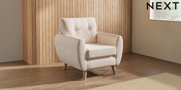 7.3.1 Buy Wilson Buttoned Back Armchair Boucle Chenille Oyster Retro Tapered - Light from the Laura Ashley online shop