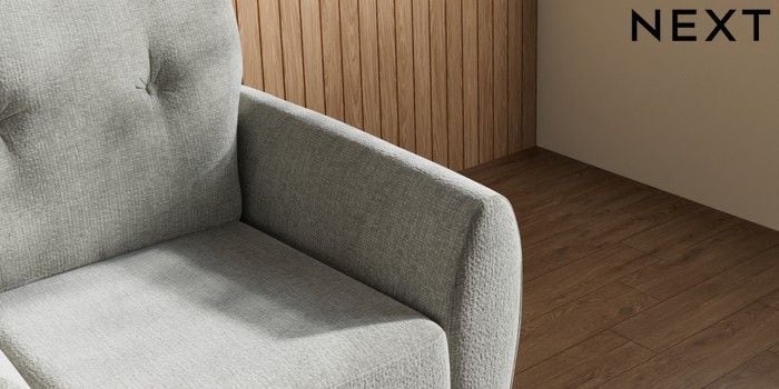 7.3.1 Buy Wilson Buttoned Back Armchair Chunky Chenille Light Grey Retro Tapered - Mid from the Laura Ashley online shop