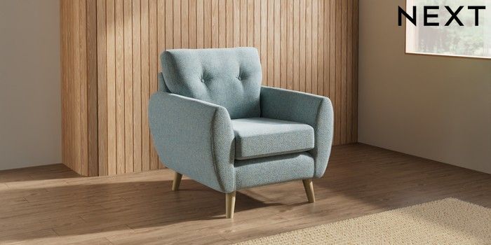 7.3.1 Buy Wilson Buttoned Back Armchair Chunky Marl Mid Blue Retro Tapered - Light from the Laura Ashley online shop Click here to use our website with more accessibility support, for example screen readers