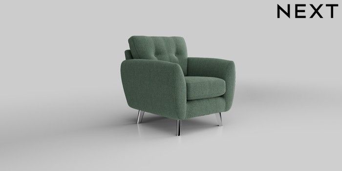 6.12.1 Buy Wilson Buttoned Back Armchair Chunky Texture Mid Forest Green Metal Tapered - Chrome from the Laura Ashley online shop Click here to use our website with more accessibility support, for example screen readers