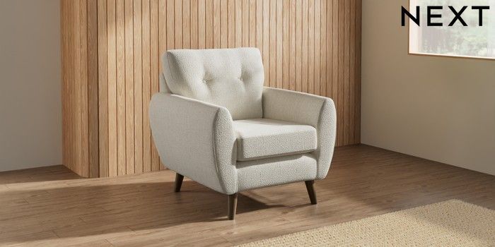 7.3.1 Buy Wilson Buttoned Back Armchair Chunky Texture Oyster Retro Tapered - Mid from the Laura Ashley online shop Click here to use our website with more accessibility support, for example screen readers