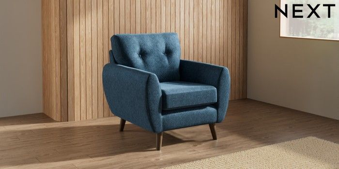 7.3.1 Buy Wilson Buttoned Back Armchair Cotswold Chenille Dark Blue Retro Tapered - Mid from the Laura Ashley online shop Click here to use our website with more accessibility support, for example screen readers