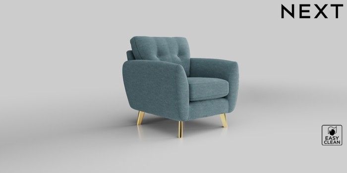6.12.1 Buy Wilson Buttoned Back Armchair Fine Chenille Easy Clean Mid Blue Metal Tapered - Gold from the Laura Ashley online shop Click here to use our website with more accessibility support, for example screen readers