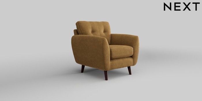 6.12.1 Buy Wilson Buttoned Back Armchair Luxe Chenille Honey Yellow Retro Tapered - Dark Brown from the Laura Ashley online shop Click here to use our website with more accessibility support, for example screen readers