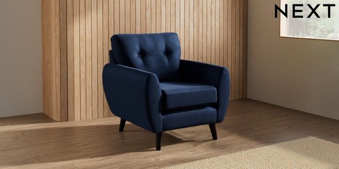 7.3.1 Buy Wilson Buttoned Back Armchair Luxe Chenille Navy Blue Retro Tapered - Dark from the Laura Ashley online shop Click here to use our website with more accessibility support, for example screen readers