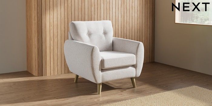 7.3.1 Buy Wilson Buttoned Back Armchair Multi Weave Oyster Retro Tapered - Light from the Laura Ashley online shop