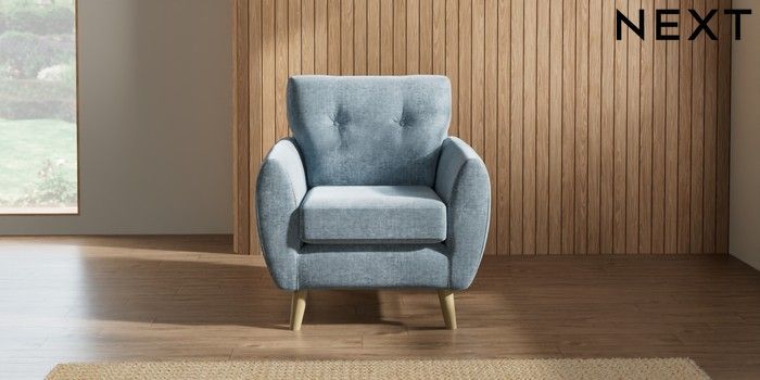 7.2.6 Buy Wilson Buttoned Back Armchair Plush Chenille Light Blue Retro Tapered - Light from the Laura Ashley online shop Click here to use our website with more accessibility support, for example screen readers