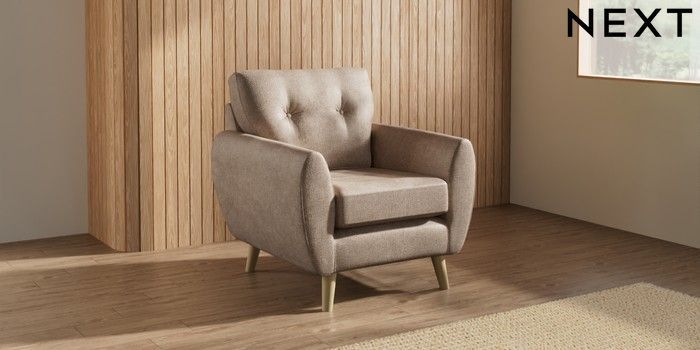 7.3.1 Buy Wilson Buttoned Back Armchair Plush Chenille Mid Natural Retro Tapered - Light from the Laura Ashley online shop