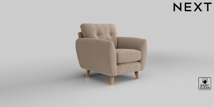 6.12.13 Buy Wilson Buttoned Back Armchair Tweedy Blend Easy Clean Light Dove Natural Retro Tapered - Light from the Laura Ashley online shop Click here to use our website with more accessibility support, for example screen readers