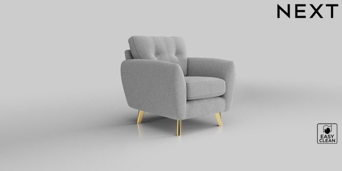 6.12.13 Buy Wilson Buttoned Back Armchair Tweedy Blend Easy Clean Light Silver Grey Metal Tapered - Gold from the Laura Ashley online shop Click here to use our website with more accessibility support, for example screen readers