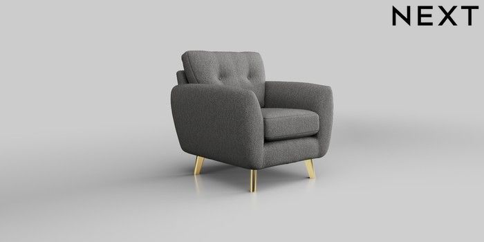 6.12.1 Buy Wilson Buttoned Back Armchair Tweedy Chenille Dark Grey Metal Tapered - Gold from the Laura Ashley online shop Click here to use our website with more accessibility support, for example screen readers
