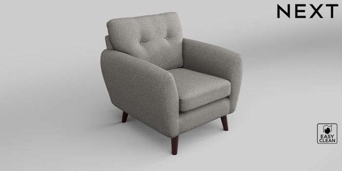 6.12.1 Buy Wilson Buttoned Back Armchair Woven Chenille Easy Clean Light Grey Retro Tapered - Dark Brown from the Laura Ashley online shop Click here to use our website with more accessibility support, for example screen readers