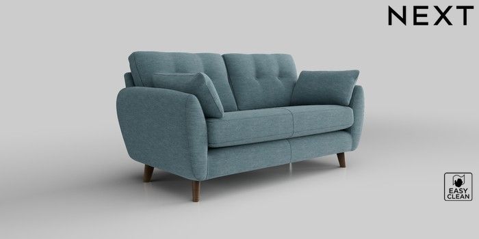 6.12.13 Buy Wilson Buttoned Back 2 Seater Sofa Fine Chenille Easy Clean Mid Blue Retro Tapered - Mid from the Laura Ashley online shop Click here to use our website with more accessibility support, for example screen readers