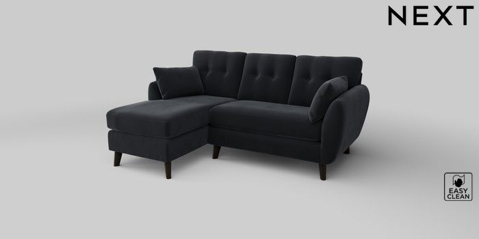 6.12.1 Buy Wilson Buttoned Back Small Sofa Chaise - Left Hand Plush Velvet Easy Clean Charcoal Grey Retro Tapered - Dark from the Laura Ashley online shop Click here to use our website with more accessibility support, for example screen readers