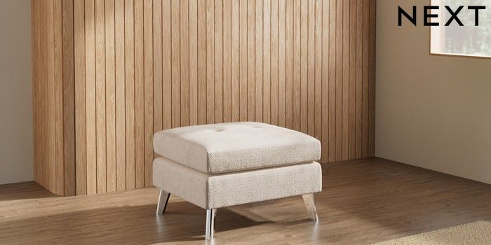 7.3.1 Buy Wilson Buttoned Back Footstool Boucle Chenille Oyster Metal Tapered - Chrome from the Laura Ashley online shop Click here to use our website with more accessibility support, for example screen readers