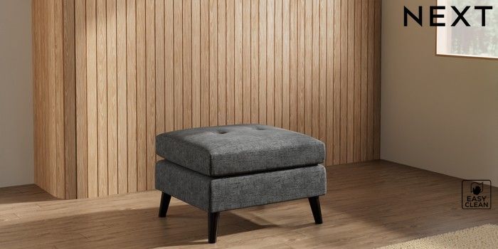 7.3.1 Buy Wilson Buttoned Back Footstool Boucle Weave Easy Clean Charcoal Grey Retro Tapered - Dark from the Laura Ashley online shop Click here to use our website with more accessibility support, for example screen readers