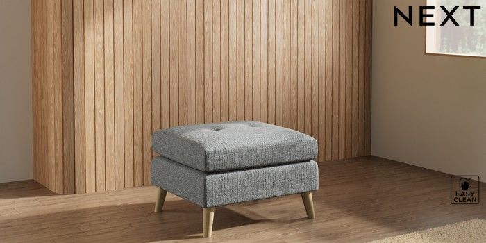 7.3.1 Buy Wilson Buttoned Back Footstool Chunky Boucle Easy Clean Mid Grey Retro Tapered - Light from the Laura Ashley online shop