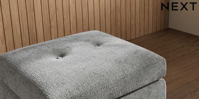 7.3.1 Buy Wilson Buttoned Back Footstool Chunky Chenille Dark Grey Metal Tapered - Gold from the Laura Ashley online shop Click here to use our website with more accessibility support, for example screen readers