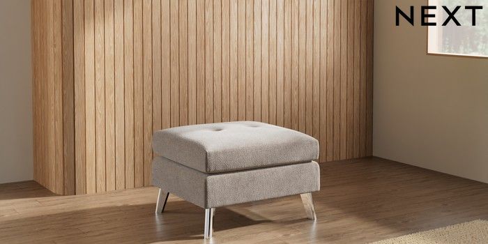 7.3.1 Buy Wilson Buttoned Back Footstool Chunky Chenille Light Dove Metal Tapered - Chrome from the Laura Ashley online shop