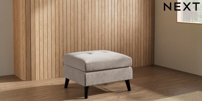 7.3.1 Buy Wilson Buttoned Back Footstool Chunky Chenille Light Dove Retro Tapered - Dark from the Laura Ashley online shop